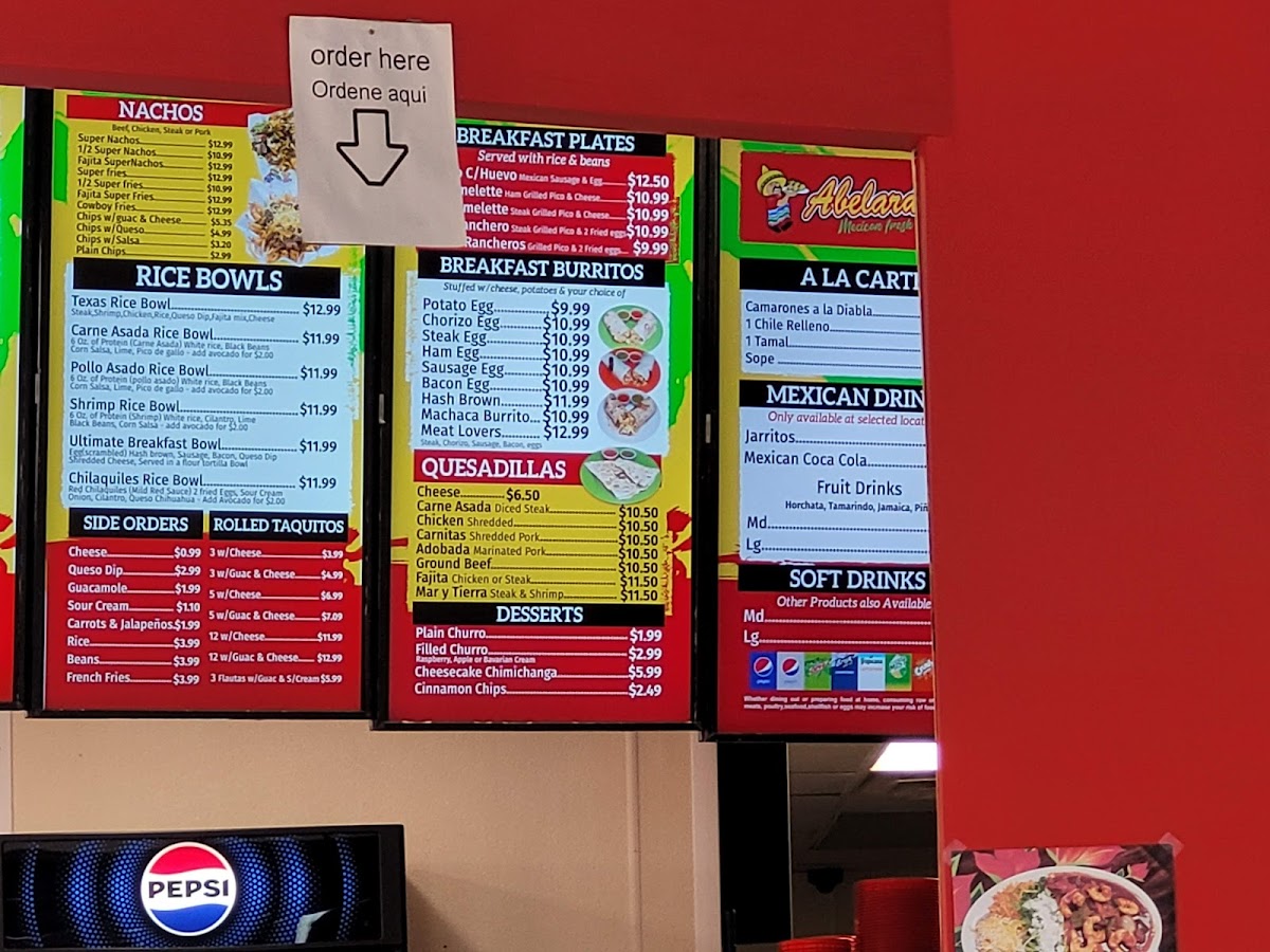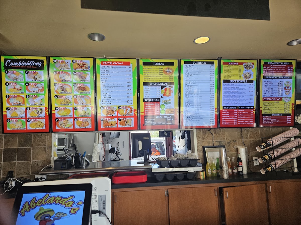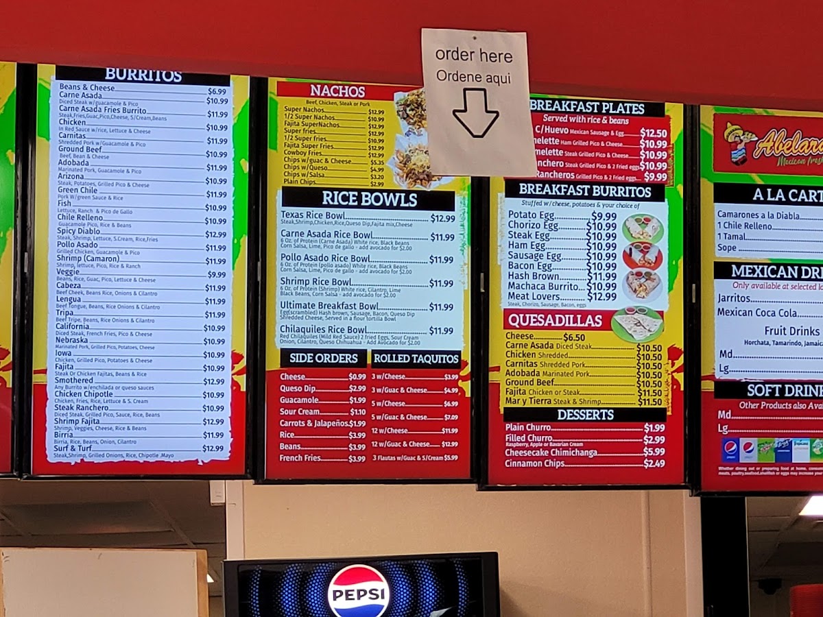 Abelardo's Mexican Fresh offers an extensive and diverse menu with a variety of delicious options to satisfy every craving. The Birria Plate is a standout, with rich and flavorful birria that can be paired with side orders like rice, beans, pico de gallo, or guacamole. For those craving something more filling, the Fish Torta, Carnitas Torta, and Carne Asada Torta are excellent choices. The Rolled Taquitos are available in multiple variations, including options with guacamole, cheese, or both, making them perfect for sharing or as a hearty snack. Breakfast lovers will enjoy the Bacon Egg Burrito, Chorizo Egg Burrito, and other flavorful combinations like the Steak Ranchero Breakfast. The menu also includes tasty Quesadillas, like the Chicken Quesadilla or Carnitas Quesadilla, and refreshing Mexican Drinks like Jarritos and Horchata. For a more substantial meal, the Burritos, like the Arizona Burrito or Birria Burrito, offer a fulfilling option. Don’t forget the savory Elote En Vaso or indulgent Churros and Cheesecake Chimichangas for dessert. There’s also a variety of Tacos, including Carne Asada Taco and Tripe Taco, and tasty Tostadas like the Carnitas Tostada. For a full meal, the Combinations like the Carne Asada Burritos or Chimichanga Plate are excellent options. With a wide range of choices, Abelardo’s is sure to satisfy any craving for fresh, flavorful Mexican food.